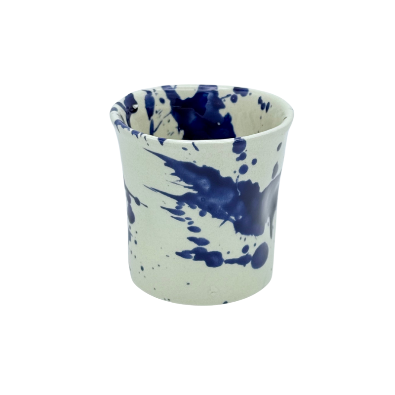 Taza de Desayuno 7 x 8 cm. Diseño gotas cobalto. Pintado a Mano. Cerámica artesanal europea. Vaso para Café Solo. Accesorio de Vajilla. Accesorio de Mesa. Decoración de Hogar. Piezas de cerámica para desayuno. Cerámica hecha en España. Artículos de Regalo para Hogar. Apto para lavavajillas y microondas. Juego de Café.